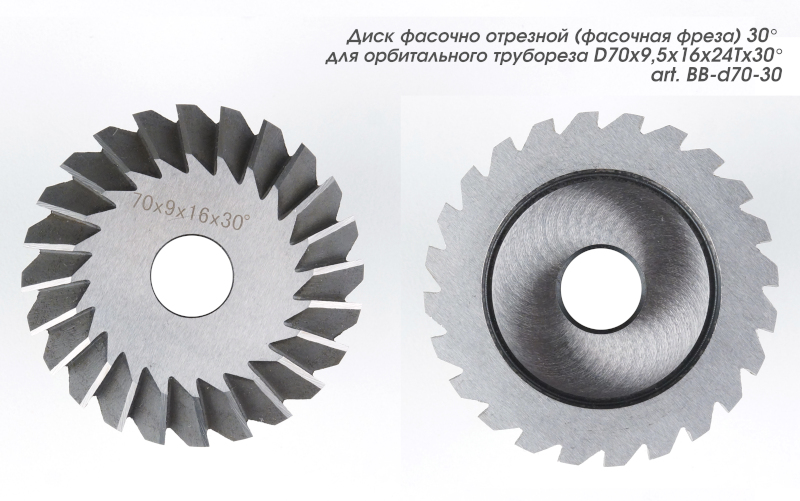 Диск фасочно отрезной (фасочная фреза) 30° для орбитального трубореза D70x9,5x16x24Tx30°art. BB-d70-30